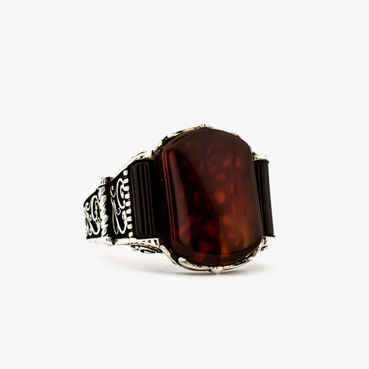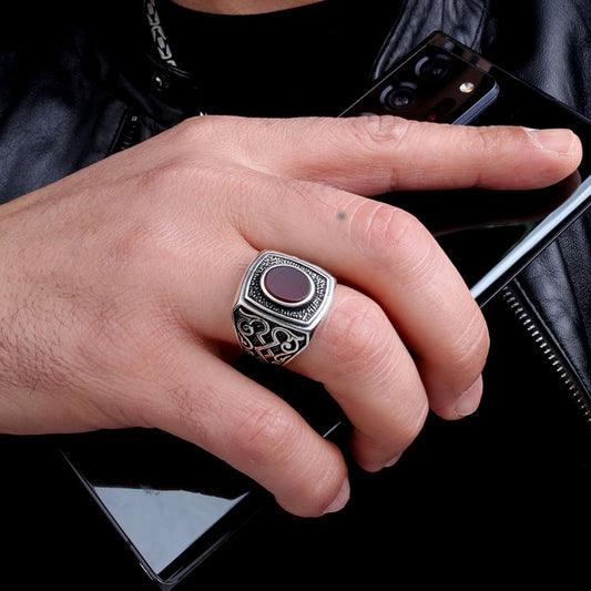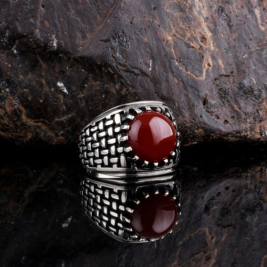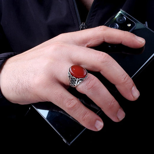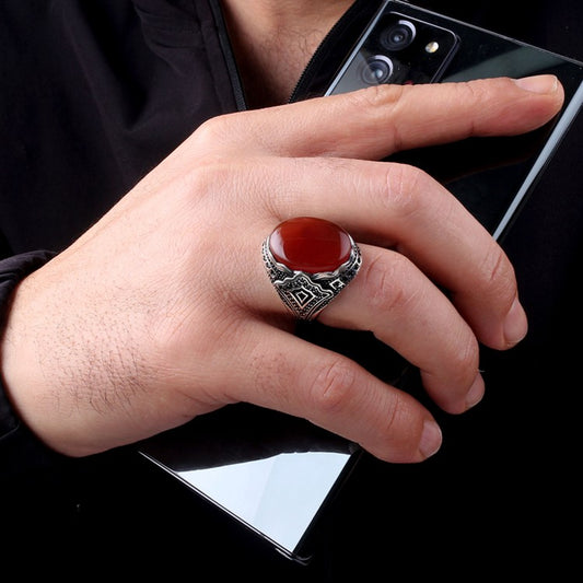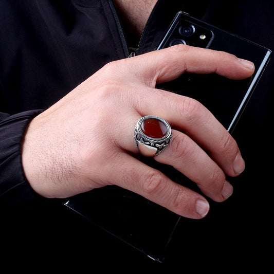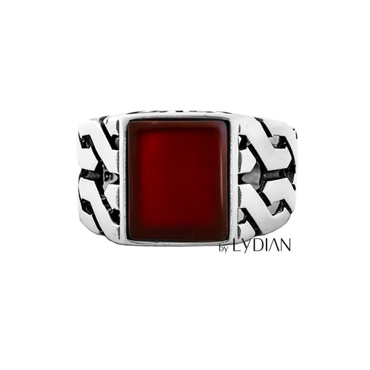 Herrenring aus 925er Silber mit rotem Achatstein LMR505