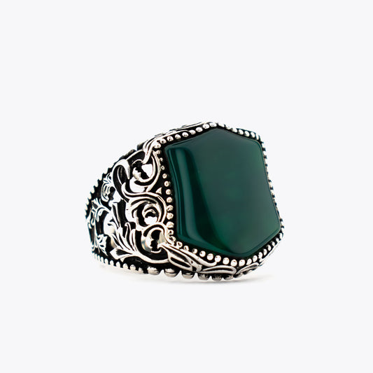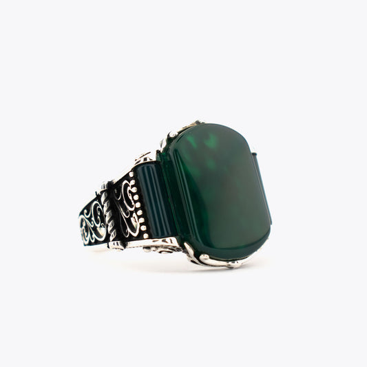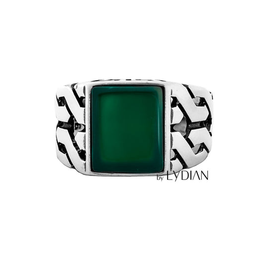 Herrenring aus 925er Silber mit grünem Achatstein ORTBL175