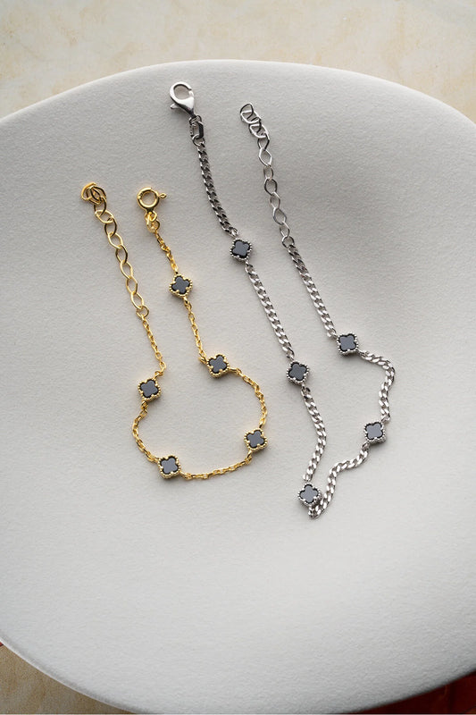 Vierblättriges Kleeblatt-Armband-Set aus 925er Sterlingsilber für Paare