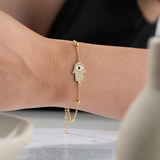 Vergoldetes Armband mit Hamsa-Hand & Auge