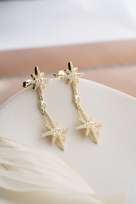 Stellalux 925 - vergoldete Zirkonia -Sternohrringe