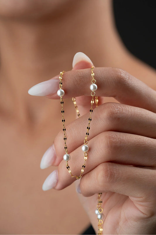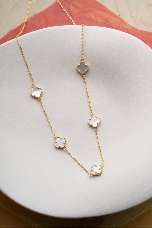Pure Clover 925 - vergoldete Kette mit weißen Klopfen vier