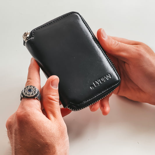 Schwarze Lederbrieftasche mit Reißverschluss BLW796-S