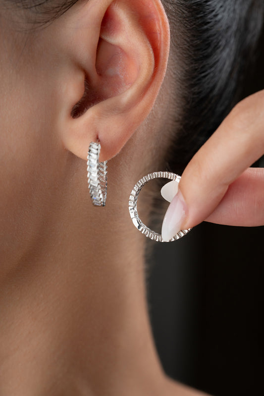 925 Sterling Zilveren Hoepeloorbellen met Baguette Stenen