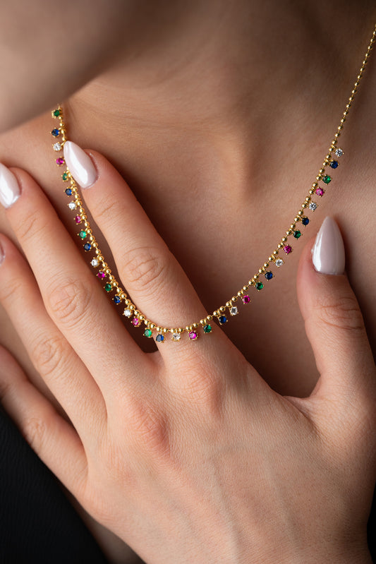 Serenay Halskette - mit farbigen Steinen - 925 Sterlingsilber