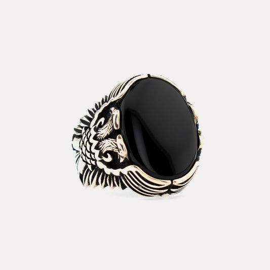 Doppelköpfiger Onyx-Stein-Silberring BLK009