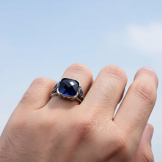 Herrenring mit Paraiba -Stein - 925 Sterlingsilber