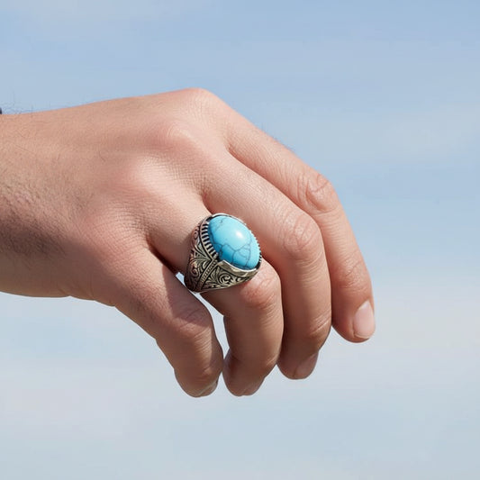 925 Sterling Silber Herrenring mit türkisfarbenem Stein
