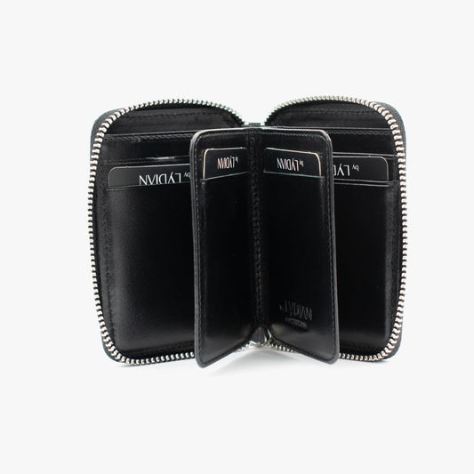 Schwarze Lederbrieftasche mit Reißverschluss BLW796-S 1