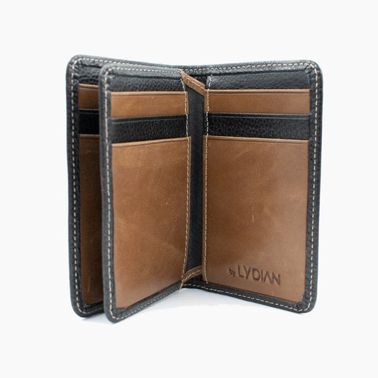 Kartenetui aus schwarzem und braunem Leder 024-04