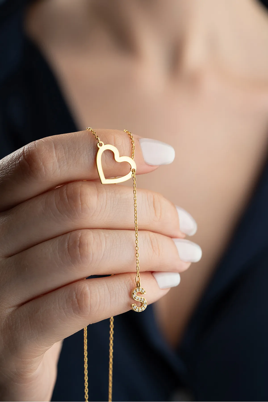 925 Sterling Silber Halskette mit Herz und Buchstaben