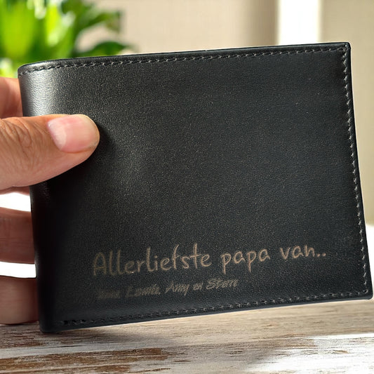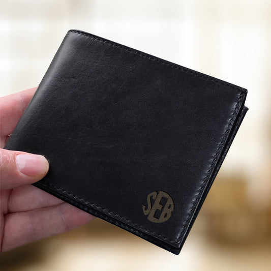 AusverkauftGravierte Lederbrieftasche – Schwarz