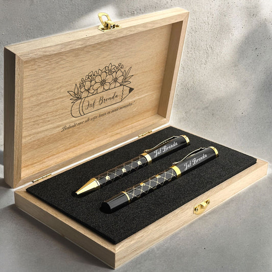 Personalisiertes Stiftset – Schreibset mit gravierter Holzbox BLP014