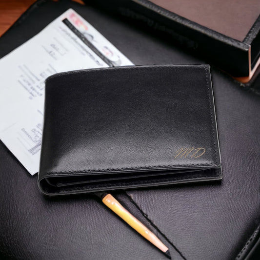 AusverkauftGravierte Lederbrieftasche – Schwarz