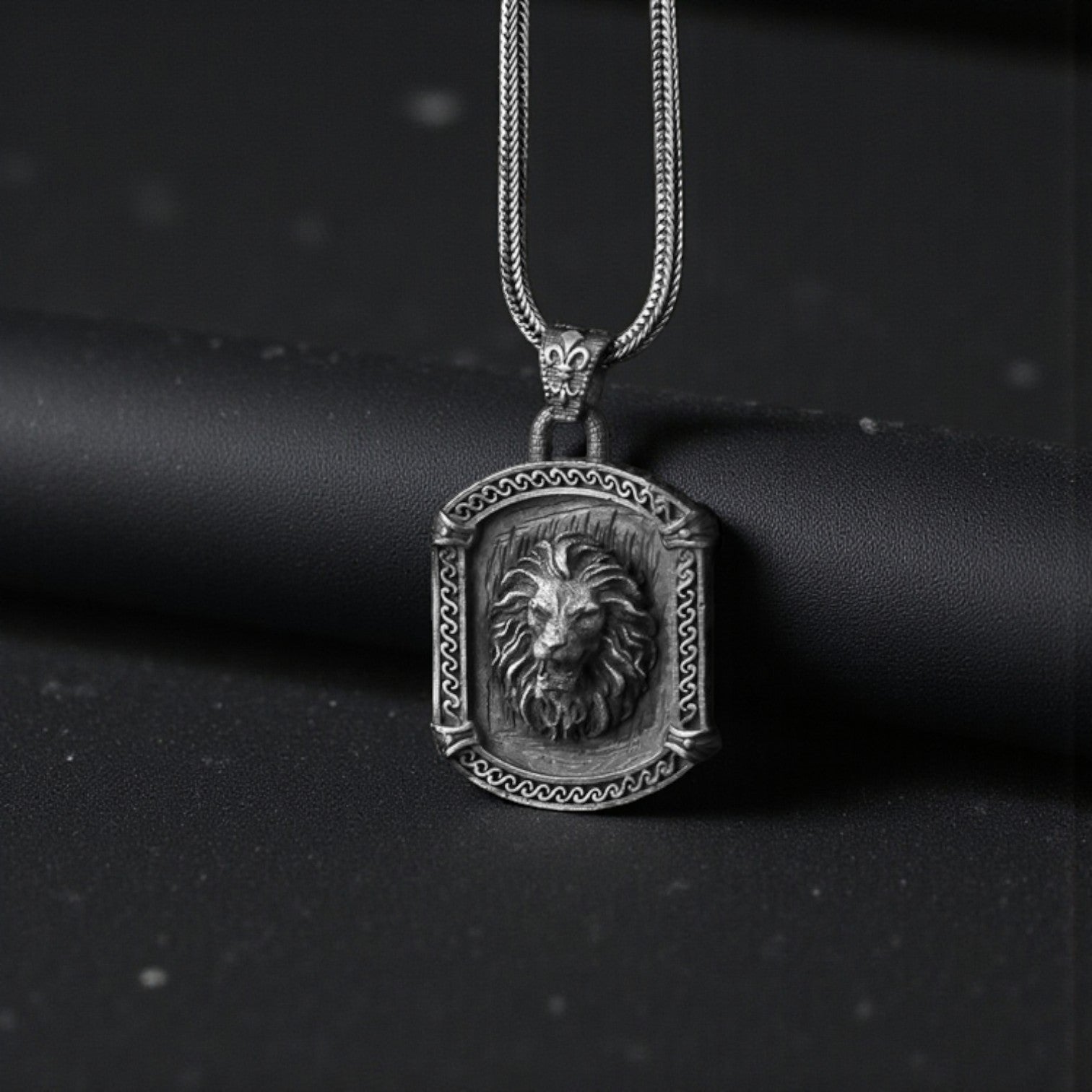 Der Löwe – ein Symbol für Stärke und Stolz – wird von einem eleganten ovalen Rand eingerahmt. Dieser Anhänger ist aus 925er Sterlingsilber gefertigt und strahlt Stärke und Stil aus.