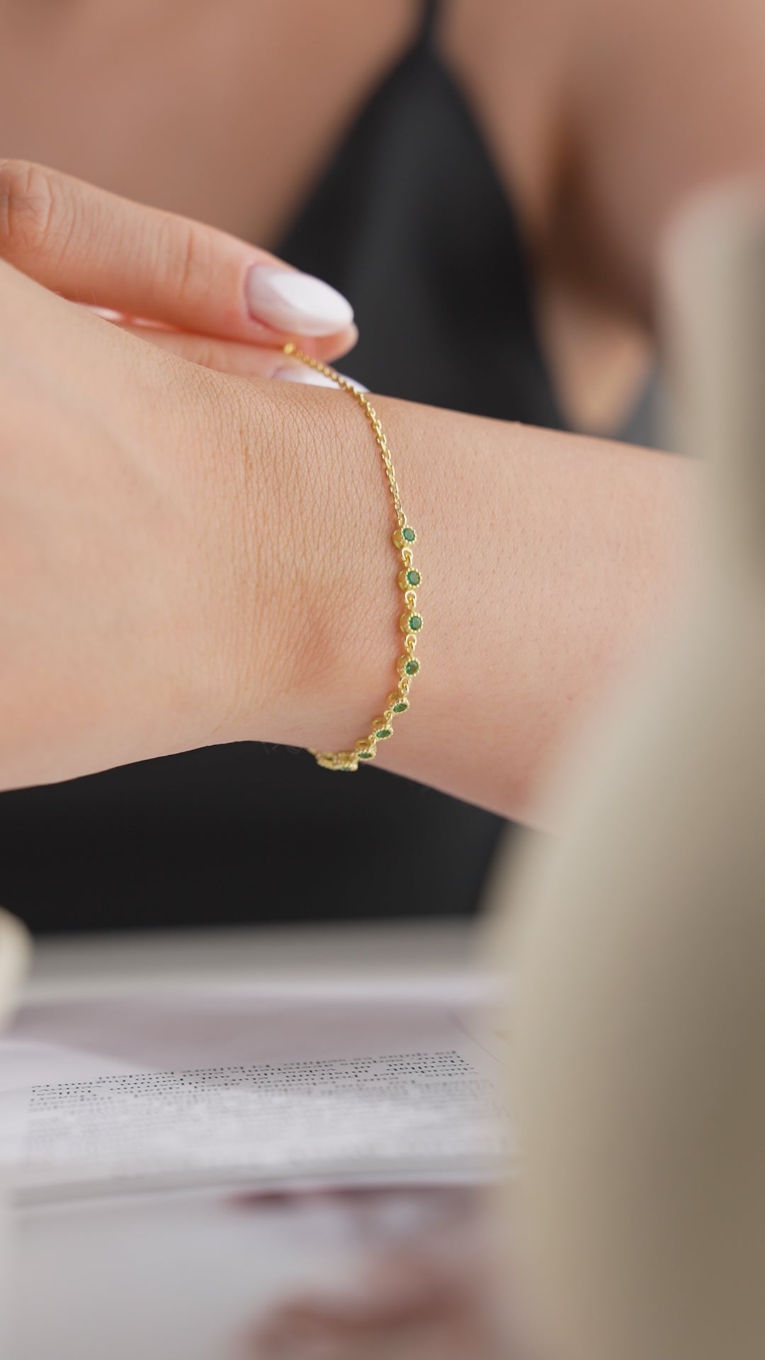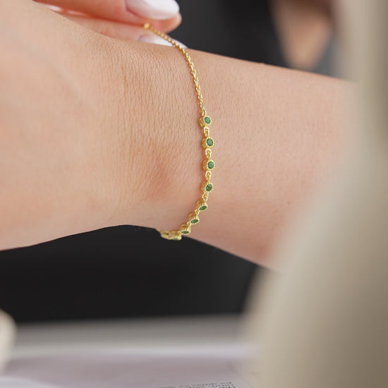 Feines Armband mit smaragdgrünen Steinen - vergoldet