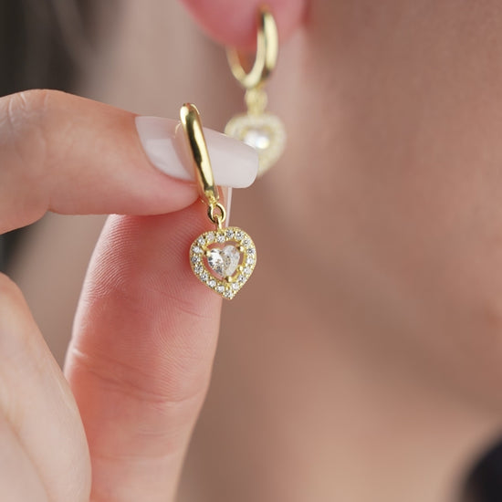 Entdecken Sie die Eleganz der Golden Heart Ohrringe. Mit atemberaubenden herzförmigen Zirkonia und dezenten Steinen sind diese Ohrringe sowohl in vergoldeter als auch in stilvollem Silber erhältlich. Eine perfekte Mischung aus Romantik und zeitloser Eleganz, exklusiv bei bylydian.nl.