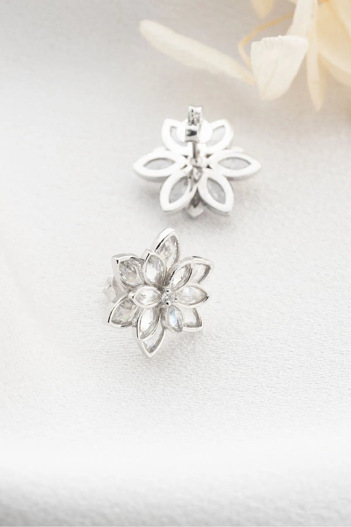 Fein gearbeitete Ohrstecker in Lotosform mit funkelnden Zirkonia – ein dezenter Hauch Eleganz in 925er Sterlingsilber.