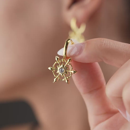 Goldfarbene Ohrringe in moderner Sternform mit funkelndem Zirkonia in der Mitte.