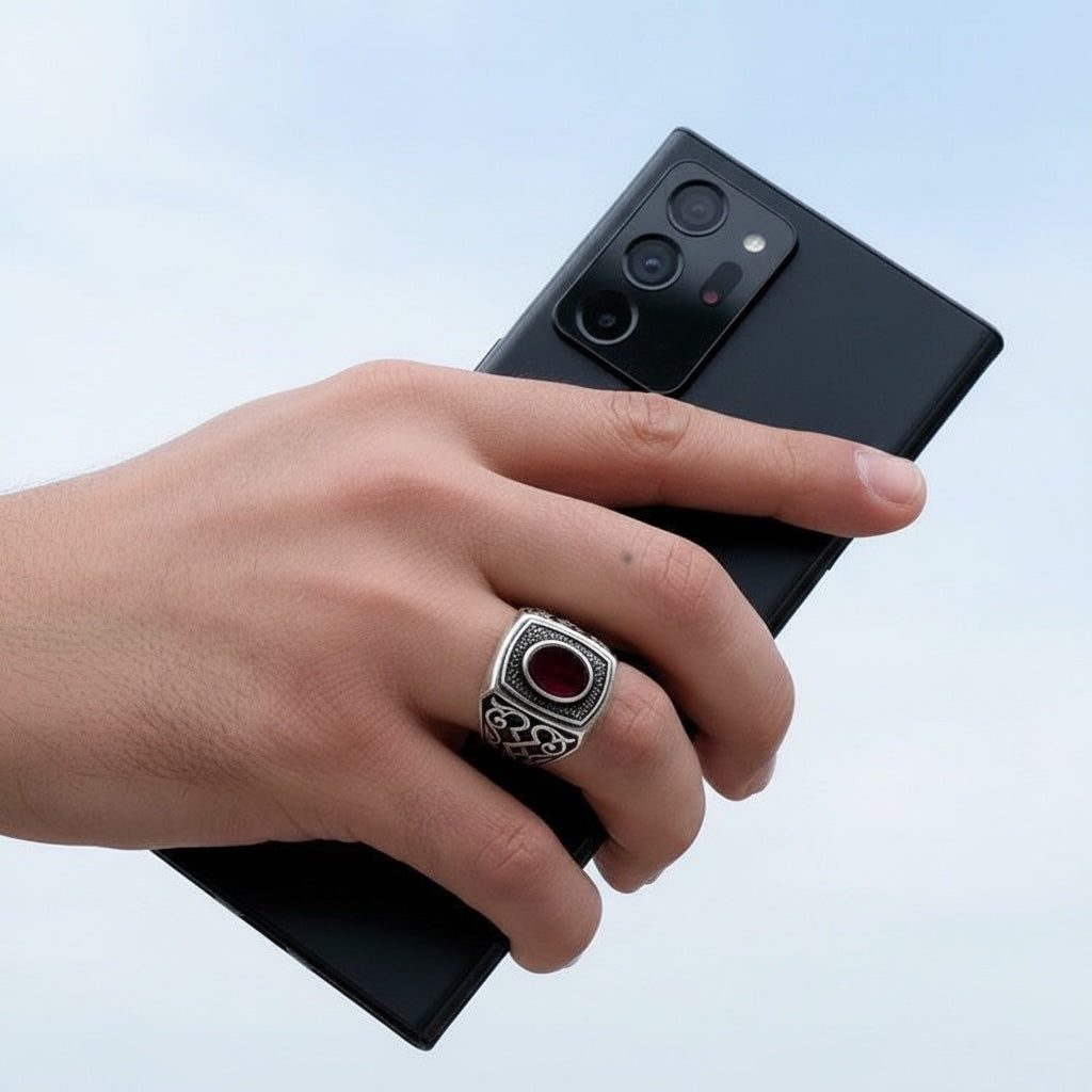 Herrenring mit Kompassstern von 925 Sterlingsilber