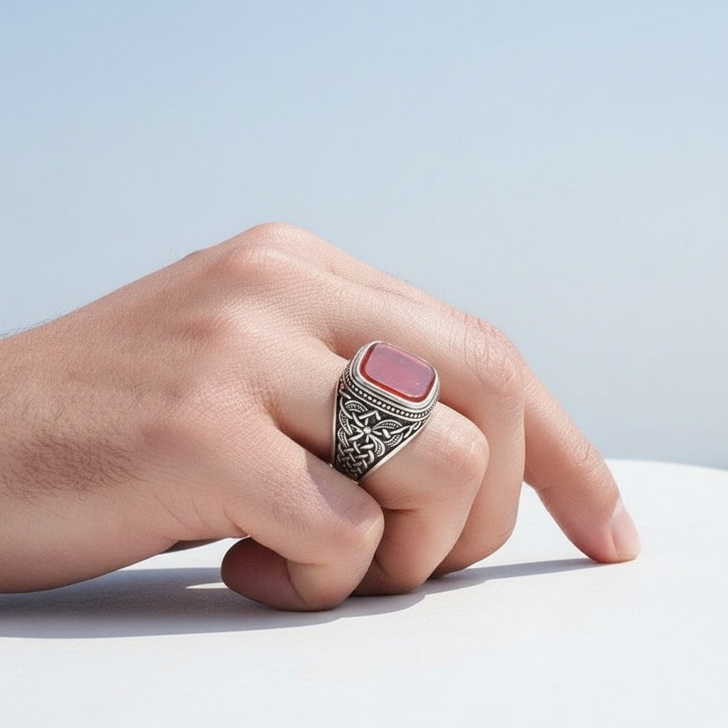 Herrenring mit Kompassstern von 925 Sterlingsilber