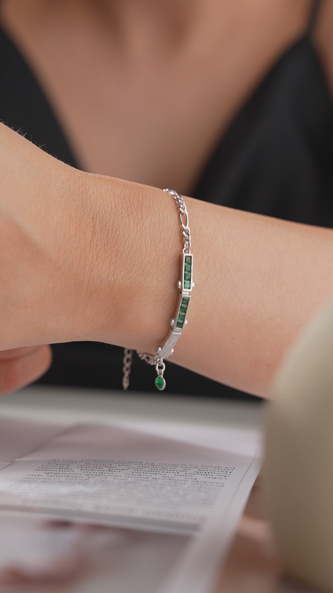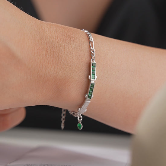 Silberarmband mit grünen Steinen und feiner Kette Design